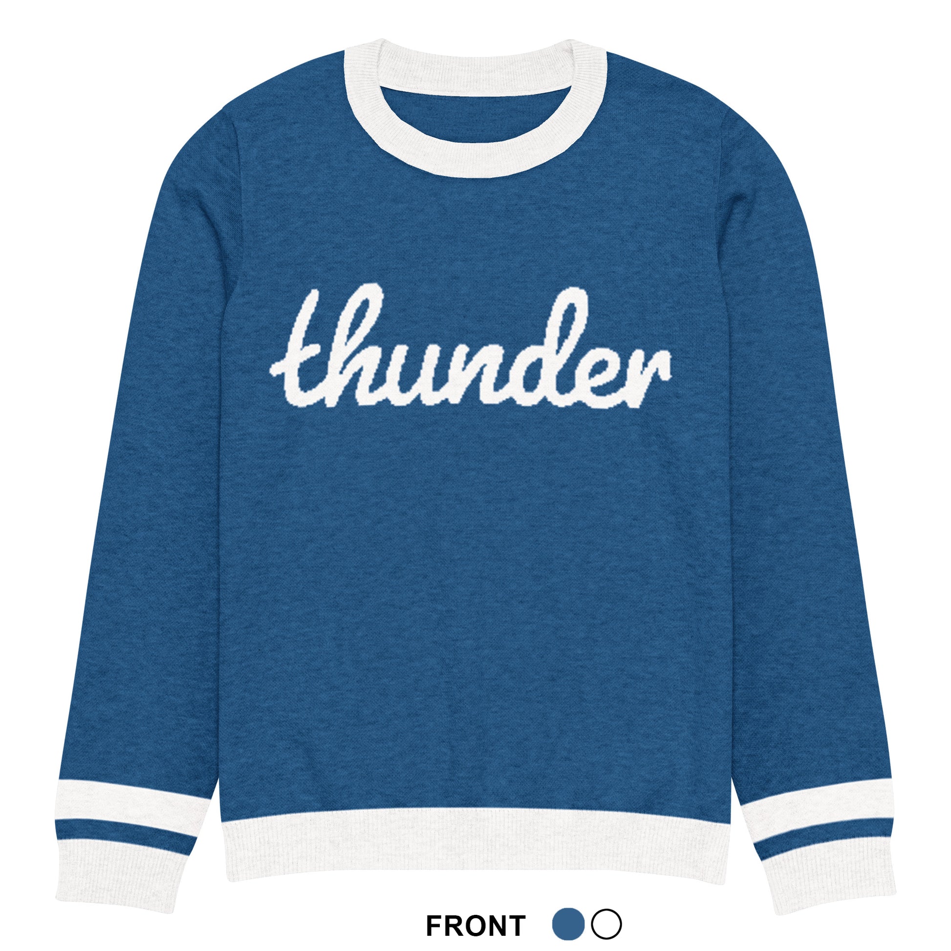 This extra-soft, knitted sweater gives the perfect, sporty vibe when you are cheering on your favorite team. Wear it to all of the Denver Christian events to show you are the #1 fan. This Thunder sweater comes in several different color options and is sure to be a game-day essential with it's classic, vintage style.